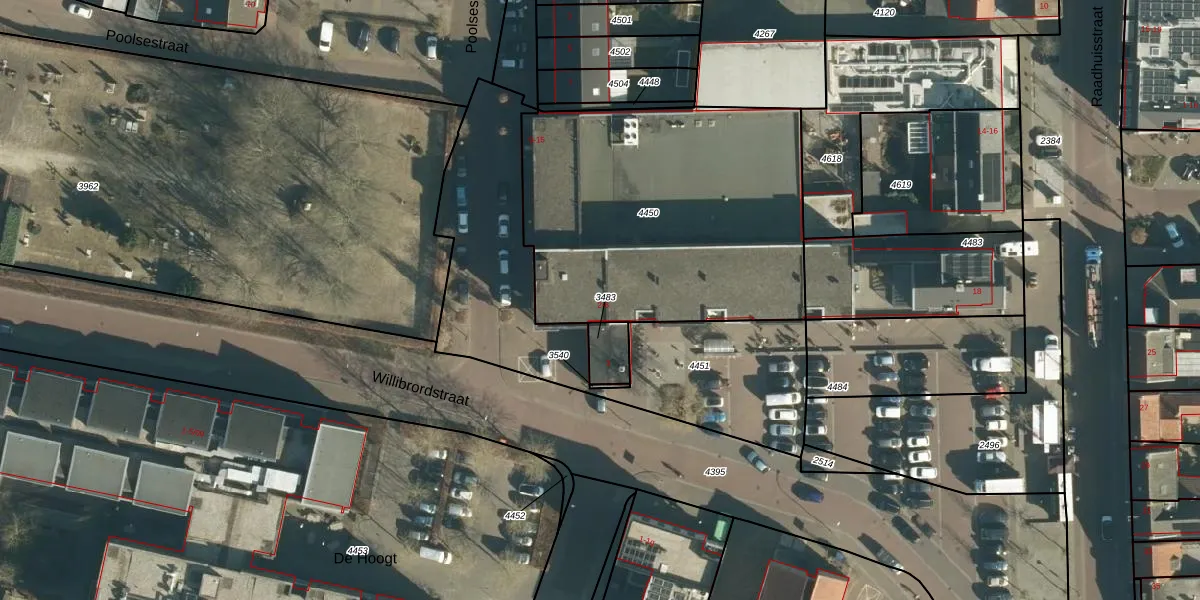 Het perceel waarop Willibrordplein 2-02 staat heeft een oppervlakte van 1630 m². Dit is een zeer groot perceel. De perceeloppervlakte wordt geregistreerd door het Kadaster. Gedetailleerde informatie over de maten van dit perceel kunt u vinden in het rapport Kadastrale kaart met maatvoering van Willibrordplein 2-02.