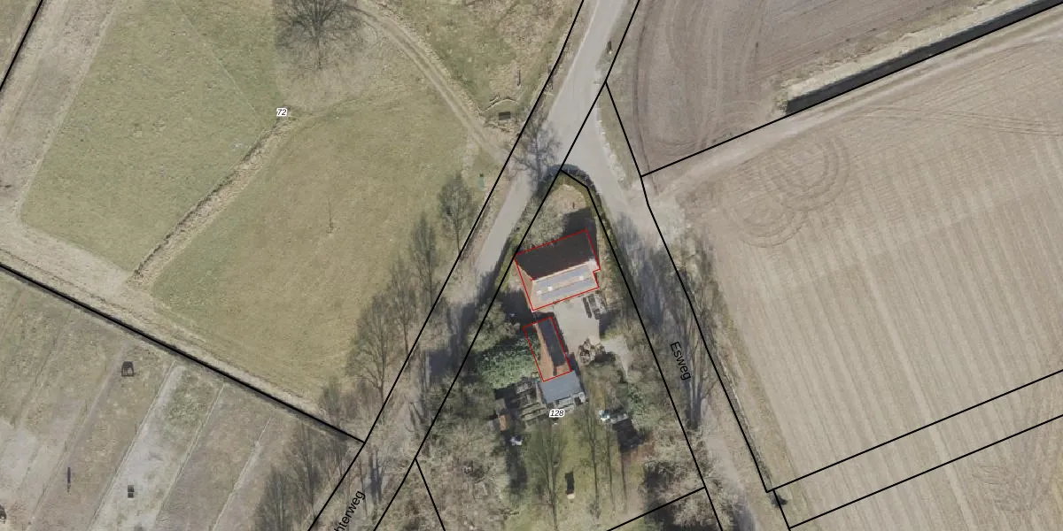 Esweg 1 is gelegen op kadastraal perceel OWD00S128. Deze kadastrale aanduiding is uniek en wordt gebruikt door het Kadaster om eigendomsrechten en andere zakelijke rechten vast te leggen. Het perceel maakt onderdeel uit van de kadastrale gemeente Onstwedde.