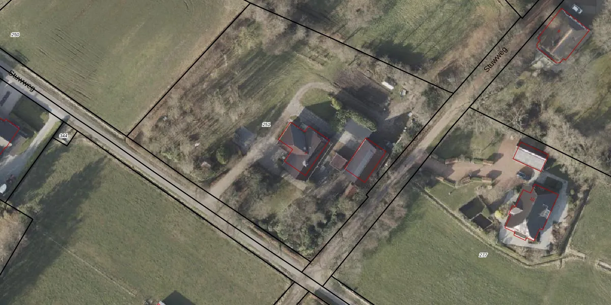 Stuwweg 2 is gelegen op kadastraal perceel RDN01O251. Deze kadastrale aanduiding is uniek en wordt gebruikt door het Kadaster om eigendomsrechten en andere zakelijke rechten vast te leggen. Het perceel maakt onderdeel uit van de kadastrale gemeente Roden.
