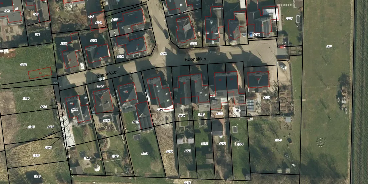 Het perceel waarop Boonakker 18 staat heeft een oppervlakte van 292 m². Dit is een middelgroot perceel. De perceeloppervlakte wordt geregistreerd door het Kadaster. Gedetailleerde informatie over de maten van dit perceel kunt u vinden in het rapport Kadastrale kaart met maatvoering van Boonakker 18.