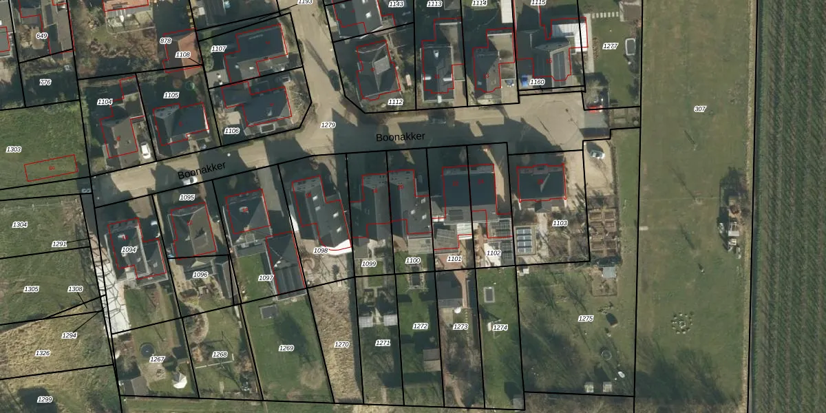 Het perceel waarop Boonakker 20 staat heeft een oppervlakte van 292 m². Dit is een middelgroot perceel. De perceeloppervlakte wordt geregistreerd door het Kadaster. Gedetailleerde informatie over de maten van dit perceel kunt u vinden in het rapport Kadastrale kaart met maatvoering van Boonakker 20.