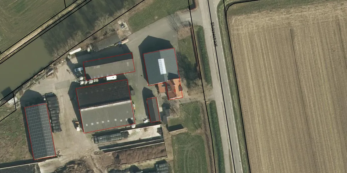 Het perceel waarop Sluissestraat 13 staat heeft een oppervlakte van 22,3 ha. Dit is een zeer groot perceel. De perceeloppervlakte wordt geregistreerd door het Kadaster. Gedetailleerde informatie over de maten van dit perceel kunt u vinden in het rapport Kadastrale kaart met maatvoering van Sluissestraat 13.