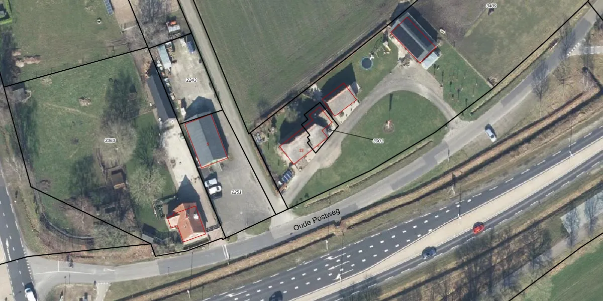 Oude Postweg 13 is gelegen op kadastraal perceel DDN01G3409. Deze kadastrale aanduiding is uniek en wordt gebruikt door het Kadaster om eigendomsrechten en andere zakelijke rechten vast te leggen. Het perceel maakt onderdeel uit van de kadastrale gemeente Ambt-Delden.