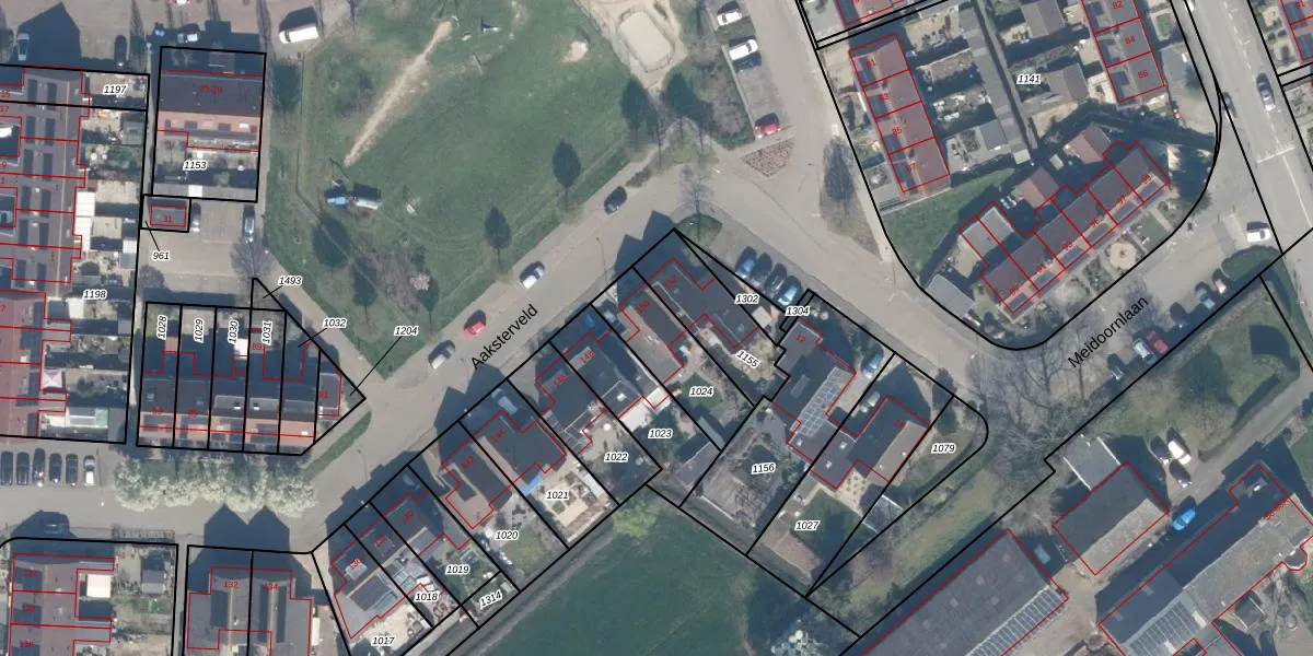 Aaksterveld 150 is gelegen op kadastraal perceel AMD00A1024. Deze kadastrale aanduiding is uniek en wordt gebruikt door het Kadaster om eigendomsrechten en andere zakelijke rechten vast te leggen. Het perceel maakt onderdeel uit van de kadastrale gemeente Ameide.