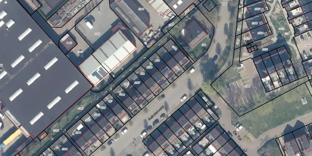 Aaksterveld 16 is gelegen op kadastraal perceel AMD00A1036. Deze kadastrale aanduiding is uniek en wordt gebruikt door het Kadaster om eigendomsrechten en andere zakelijke rechten vast te leggen. Het perceel maakt onderdeel uit van de kadastrale gemeente Ameide.