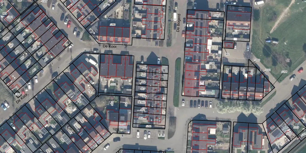 Het perceel waarop De Bogerd 18 staat heeft een oppervlakte van 96 m². Dit is een klein perceel. De perceeloppervlakte wordt geregistreerd door het Kadaster. Gedetailleerde informatie over de maten van dit perceel kunt u vinden in het rapport Kadastrale kaart met maatvoering van De Bogerd 18.