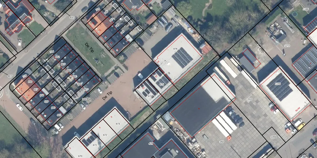 Het perceel waarop De Tip 12 staat heeft een oppervlakte van 190 m². Dit is een middelgroot perceel. De perceeloppervlakte wordt geregistreerd door het Kadaster. Gedetailleerde informatie over de maten van dit perceel kunt u vinden in het rapport Kadastrale kaart met maatvoering van De Tip 12.