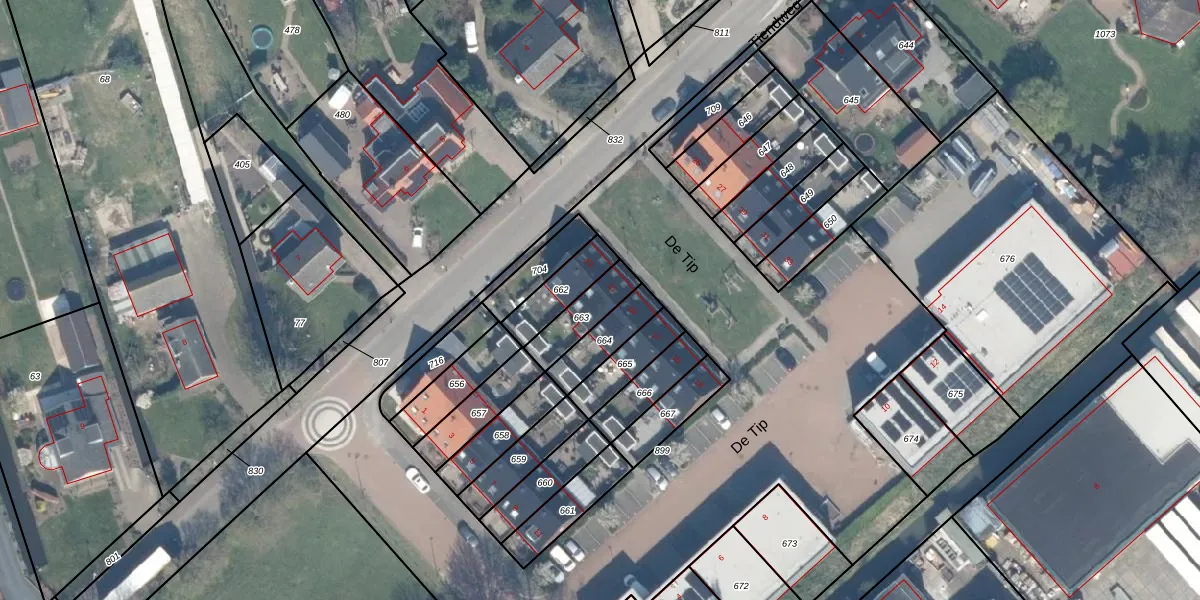 Het perceel waarop De Tip 21 staat heeft een oppervlakte van 118 m². Dit is een middelgroot perceel. De perceeloppervlakte wordt geregistreerd door het Kadaster. Gedetailleerde informatie over de maten van dit perceel kunt u vinden in het rapport Kadastrale kaart met maatvoering van De Tip 21.