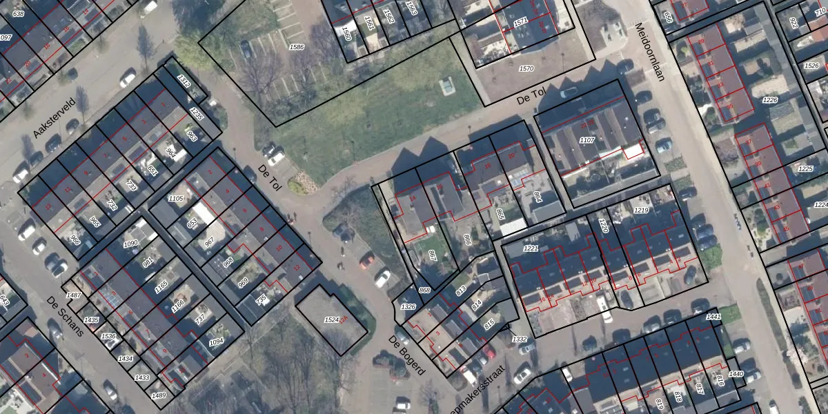 Gebruik de zoekbalk of klik op een perceel voor informatie over de adressen binnen dit perceel.