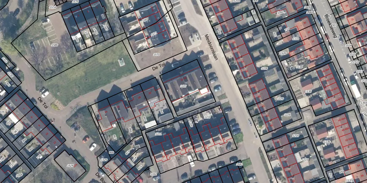 Het perceel waarop De Tol 26 staat heeft een oppervlakte van 590 m². Dit is een groot perceel. De perceeloppervlakte wordt geregistreerd door het Kadaster. Gedetailleerde informatie over de maten van dit perceel kunt u vinden in het rapport Kadastrale kaart met maatvoering van De Tol 26.
