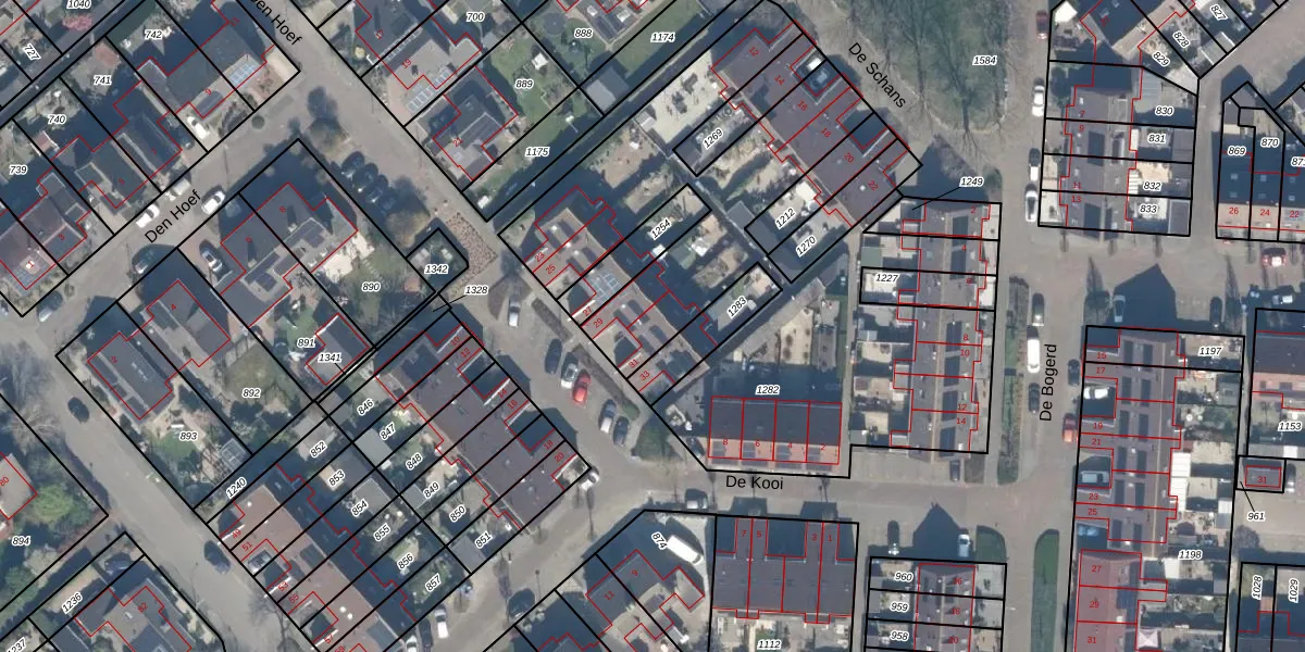 Het perceel waarop Den Hoef 31 staat heeft een oppervlakte van 2327 m². Dit is een zeer groot perceel. De perceeloppervlakte wordt geregistreerd door het Kadaster. Gedetailleerde informatie over de maten van dit perceel kunt u vinden in het rapport Kadastrale kaart met maatvoering van Den Hoef 31.