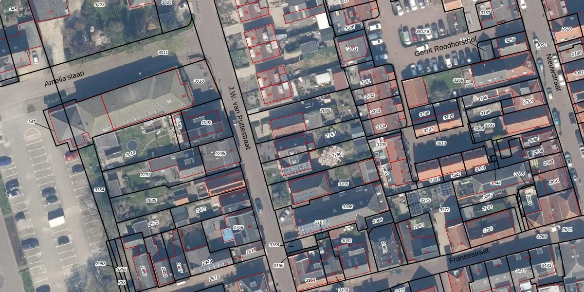 Gebruik de zoekbalk of klik op een perceel voor informatie over de adressen binnen dit perceel.