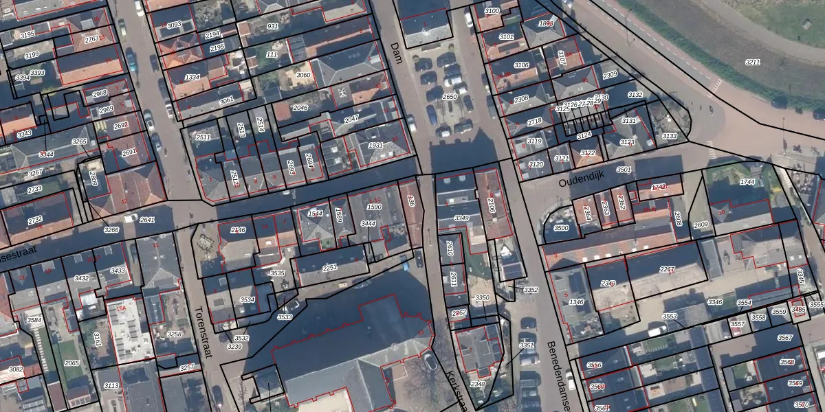 Gebruik de zoekbalk of klik op een perceel voor informatie over de adressen binnen dit perceel.