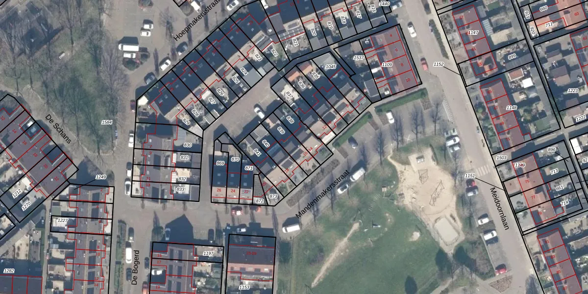 Het perceel waarop Mandenmakersstraat 16 staat heeft een oppervlakte van 130 m². Dit is een middelgroot perceel. De perceeloppervlakte wordt geregistreerd door het Kadaster. Gedetailleerde informatie over de maten van dit perceel kunt u vinden in het rapport Kadastrale kaart met maatvoering van Mandenmakersstraat 16.