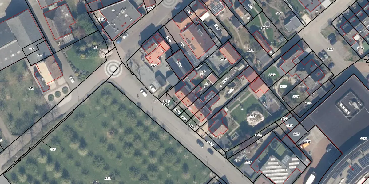 Gebruik de zoekbalk of klik op een perceel voor informatie over de adressen binnen dit perceel.