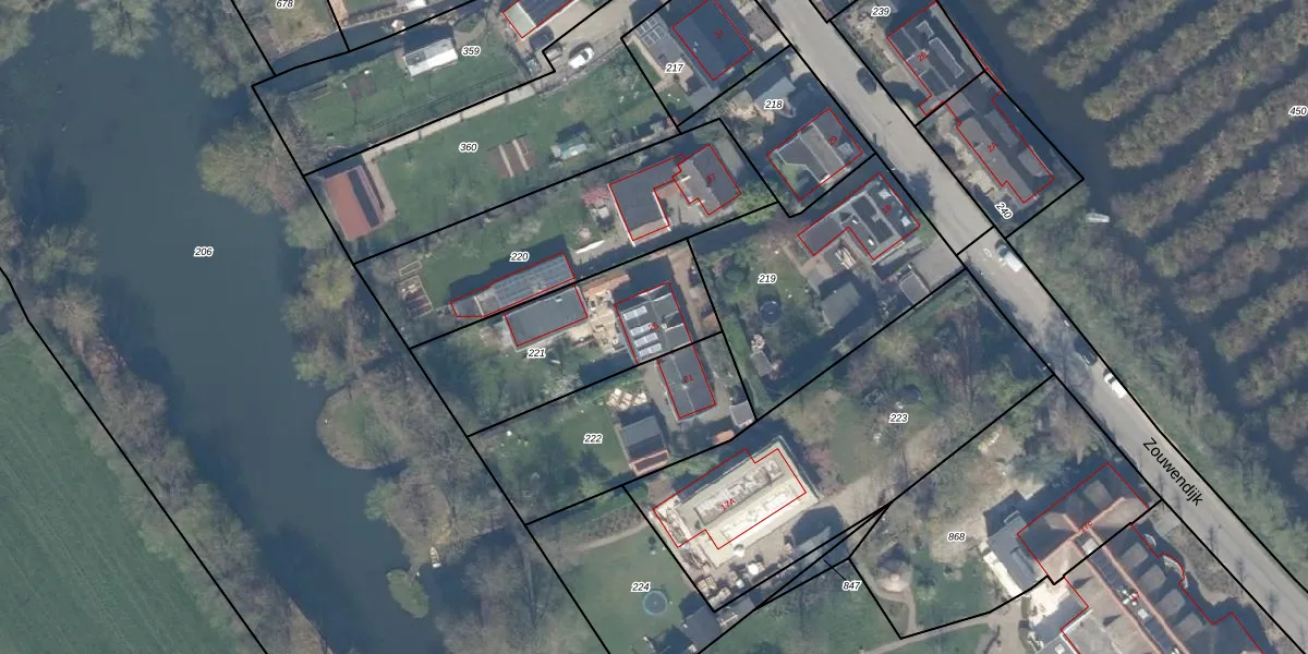 Zouwendijk 25 is gelegen op kadastraal perceel AMD00C221. Deze kadastrale aanduiding is uniek en wordt gebruikt door het Kadaster om eigendomsrechten en andere zakelijke rechten vast te leggen. Het perceel maakt onderdeel uit van de kadastrale gemeente Ameide.