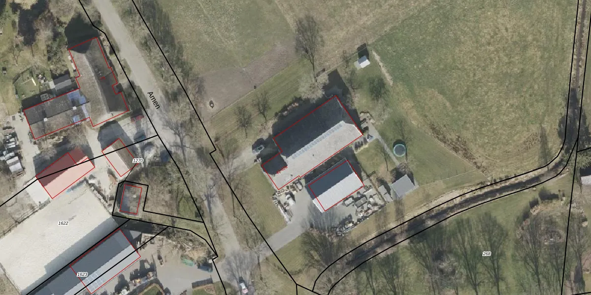 Het perceel waarop Amen 62-a staat heeft een oppervlakte van 2,7 ha. Dit is een zeer groot perceel. De perceeloppervlakte wordt geregistreerd door het Kadaster. Gedetailleerde informatie over de maten van dit perceel kunt u vinden in het rapport Kadastrale kaart met maatvoering van Amen 62-a.