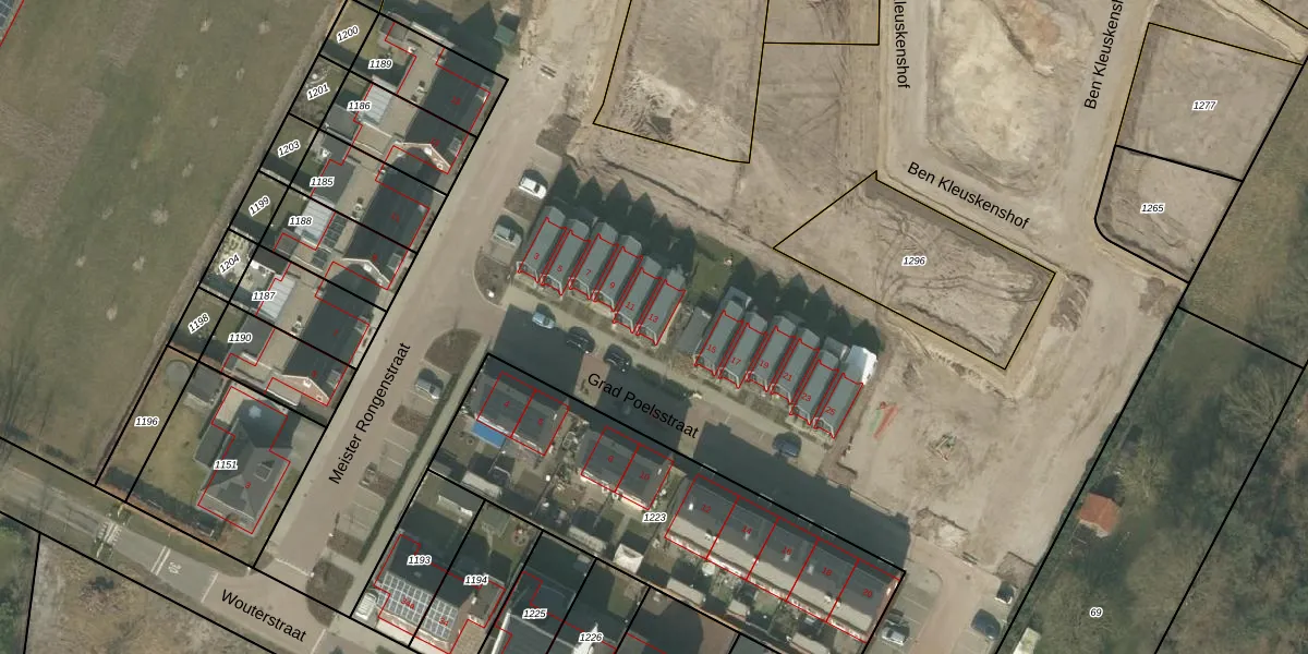 Het perceel waarop Grad Poelsstraat 13 staat heeft een oppervlakte van 1,8 ha. Dit is een zeer groot perceel. De perceeloppervlakte wordt geregistreerd door het Kadaster. Gedetailleerde informatie over de maten van dit perceel kunt u vinden in het rapport Kadastrale kaart met maatvoering van Grad Poelsstraat 13.