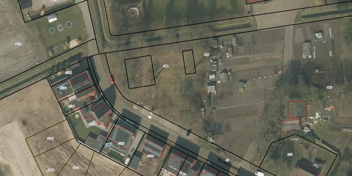 Het perceel waarop Kerkbosweg 36-b staat heeft een oppervlakte van 1,4 ha. Dit is een zeer groot perceel. De perceeloppervlakte wordt geregistreerd door het Kadaster. Gedetailleerde informatie over de maten van dit perceel kunt u vinden in het rapport Kadastrale kaart met maatvoering van Kerkbosweg 36-b.