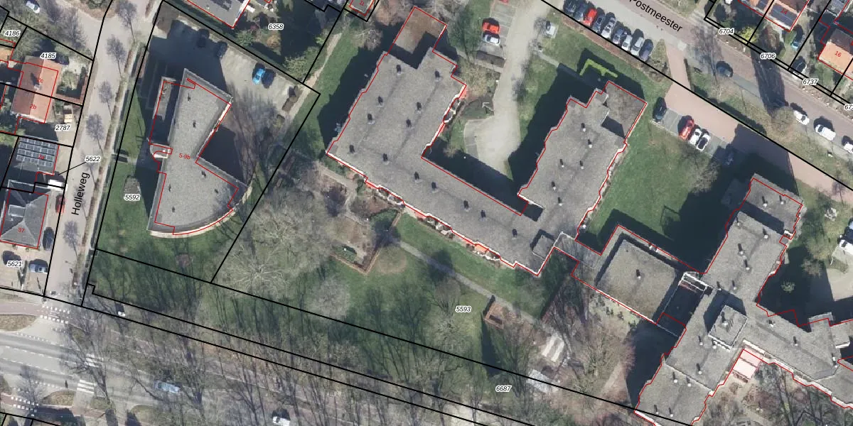 Het perceel waarop de Postmeester 27 staat heeft een oppervlakte van 1,3 ha. Dit is een zeer groot perceel. De perceeloppervlakte wordt geregistreerd door het Kadaster. Gedetailleerde informatie over de maten van dit perceel kunt u vinden in het rapport Kadastrale kaart met maatvoering van de Postmeester 27.