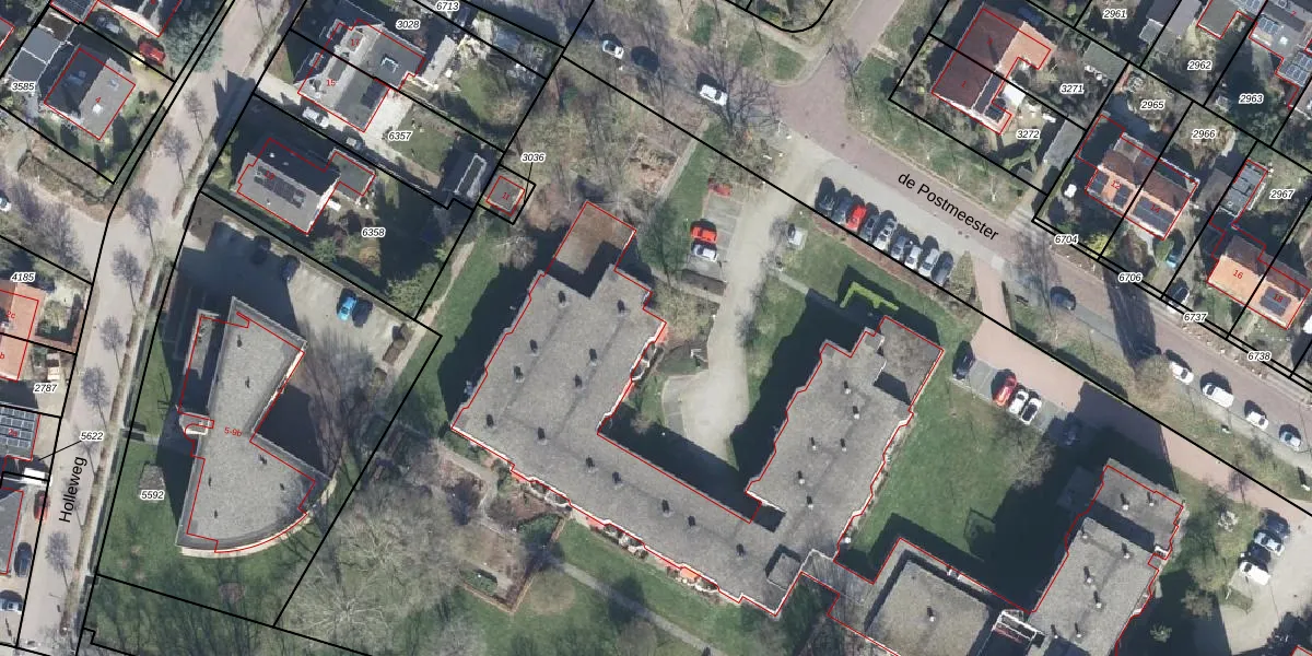 Het perceel waarop de Postmeester 41 staat heeft een oppervlakte van 1,3 ha. Dit is een zeer groot perceel. De perceeloppervlakte wordt geregistreerd door het Kadaster. Gedetailleerde informatie over de maten van dit perceel kunt u vinden in het rapport Kadastrale kaart met maatvoering van de Postmeester 41.