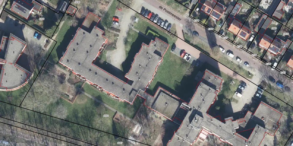 Het perceel waarop de Postmeester 61 staat heeft een oppervlakte van 1,3 ha. Dit is een zeer groot perceel. De perceeloppervlakte wordt geregistreerd door het Kadaster. Gedetailleerde informatie over de maten van dit perceel kunt u vinden in het rapport Kadastrale kaart met maatvoering van de Postmeester 61.