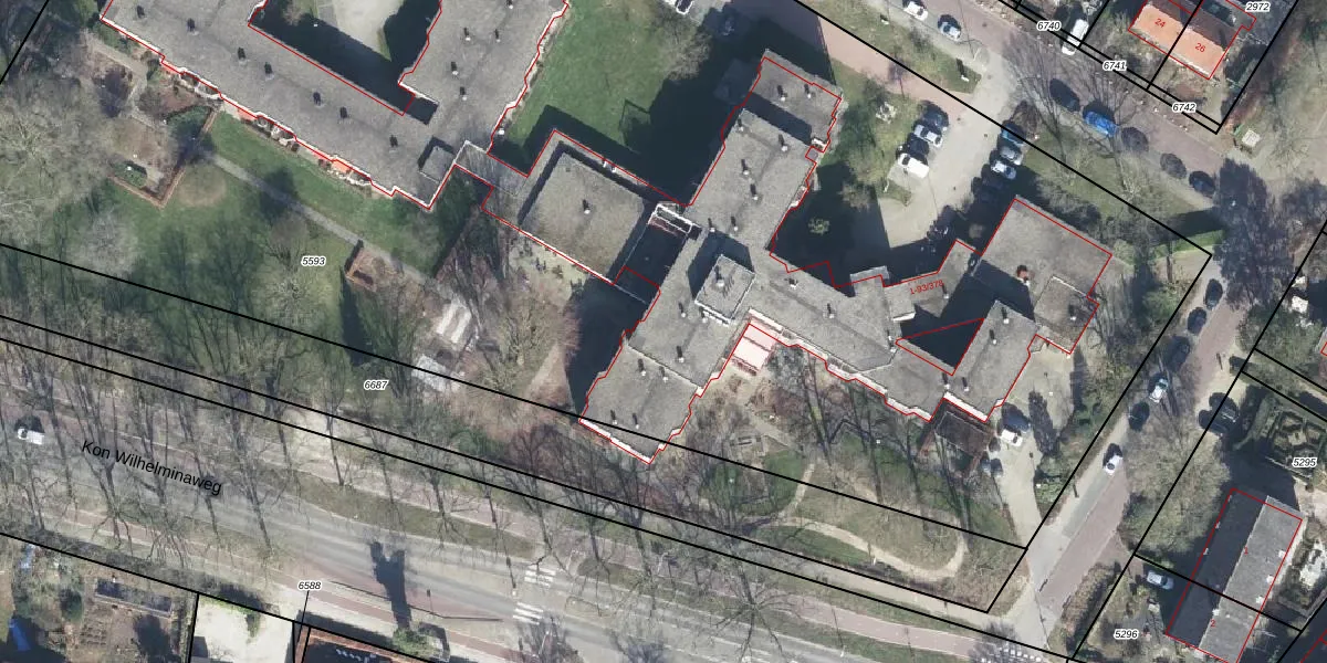 Het perceel waarop het adres ligt is AMR02-D-5593. De afkorting 'AMR02' staat voor kadastrale gemeente Amerongen. De oppervlakte van het perceel is 1,3 ha. Dat is groter dan gemiddeld in Amerongen, waar de gemiddelde perceeloppervlakte op 6866,23 m² ligt. De grootste perceeloppervlakte in de kadastrale gemeente is 1,21 km². De kleinste oppervlakte bedraagt 1 m². Op het perceel zijn 116 adressen aanwezig. De huidige grenzen van het perceel zijn digitaal in de Basisregistratie Kadaster (BRK) geregistreerd op 01-03-2021.