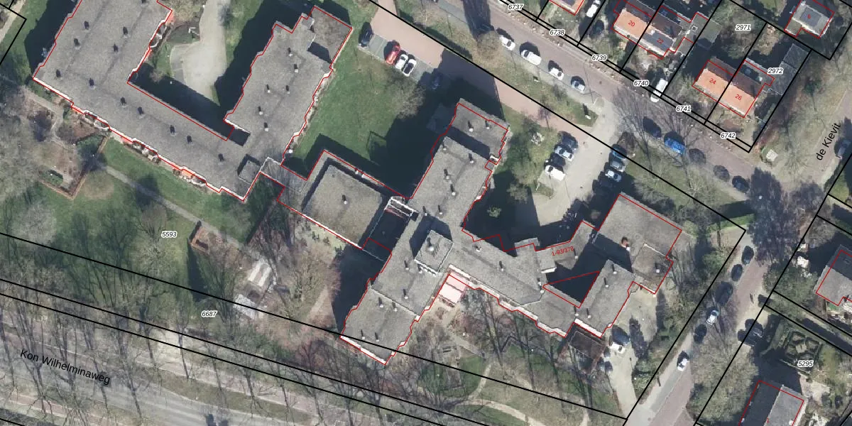 Het perceel waarop het adres ligt is AMR02-D-5593. De afkorting 'AMR02' staat voor kadastrale gemeente Amerongen. De oppervlakte van het perceel is 1,3 ha. Dat is groter dan gemiddeld in Amerongen, waar de gemiddelde perceeloppervlakte op 6866,23 m² ligt. De grootste perceeloppervlakte in de kadastrale gemeente is 1,21 km². De kleinste oppervlakte bedraagt 1 m². Er zijn 116 adressen aanwezig op het perceel. In de Basisregistratie Kadaster (BRK) werden de grenzen van het perceel geregistreerd op 01-03-2021.