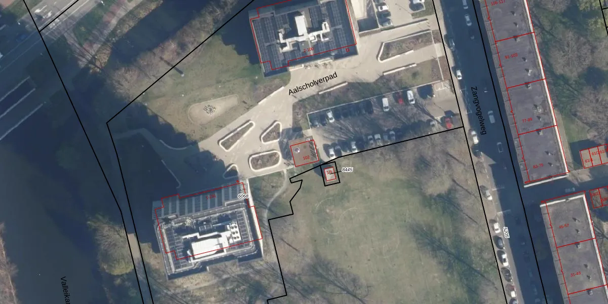 Het perceel waarop Aalscholverpad 102 staat heeft een oppervlakte van 9120 m². Dit is een zeer groot perceel. De perceeloppervlakte wordt geregistreerd door het Kadaster. Gedetailleerde informatie over de maten van dit perceel kunt u vinden in het rapport Kadastrale kaart met maatvoering van Aalscholverpad 102.