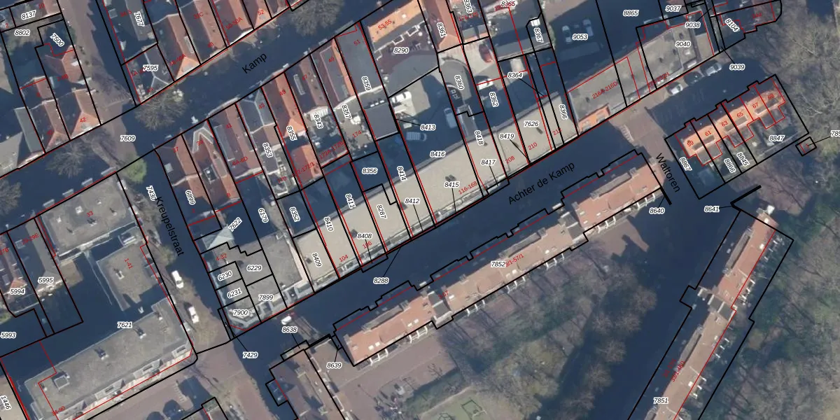 Het perceel waarop het adres ligt is AMF00-E-8414. De afkorting 'AMF00' staat voor kadastrale gemeente Amersfoort. Het perceel is kleiner dan gemiddeld in Amersfoort. Het perceel is 158 m² groot, terwijl het gemiddelde ligt op 960,19 m². Het kleinste perceel in de kadastrale gemeente is 0 m² groot. De grootste perceeloppervlakte is 1,12 km². Op het perceel liggen in totaal 12 adressen. De laatste wijziging in het de Basisregistratie Kadaster (BRK) was op 19-09-1997.