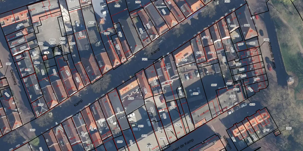 Het adres ligt op het perceel AMF00-E-8363, dat zich in de kadastrale gemeente Amersfoort bevindt. De gemiddelde perceelgrootte in Amersfoort is 959,94 m². Dit perceel is kleiner: de perceeloppervlakte bedraagt 135 m². Het grootste perceel in de kadastrale gemeente is 1,12 km². Het kleinste perceel heeft een oppervlakte van 0 m². Er zijn 3 adressen aanwezig op het perceel. De huidige grenzen van het perceel zijn digitaal in de Basisregistratie Kadaster (BRK) geregistreerd op 19-09-1997.