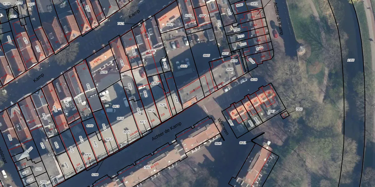 Het perceel waarop het adres ligt is AMF00-E-9053. De afkorting 'AMF00' staat voor kadastrale gemeente Amersfoort. De gemiddelde perceelgrootte in Amersfoort is 959,8 m². Dit perceel is kleiner: de perceeloppervlakte bedraagt 545 m². De grootste perceeloppervlakte in de kadastrale gemeente is 1,12 km². De kleinste oppervlakte bedraagt 0 m². Er zijn 14 adressen aanwezig op het perceel. De huidige grenzen van het perceel zijn digitaal in de Basisregistratie Kadaster (BRK) geregistreerd op 19-04-2016.