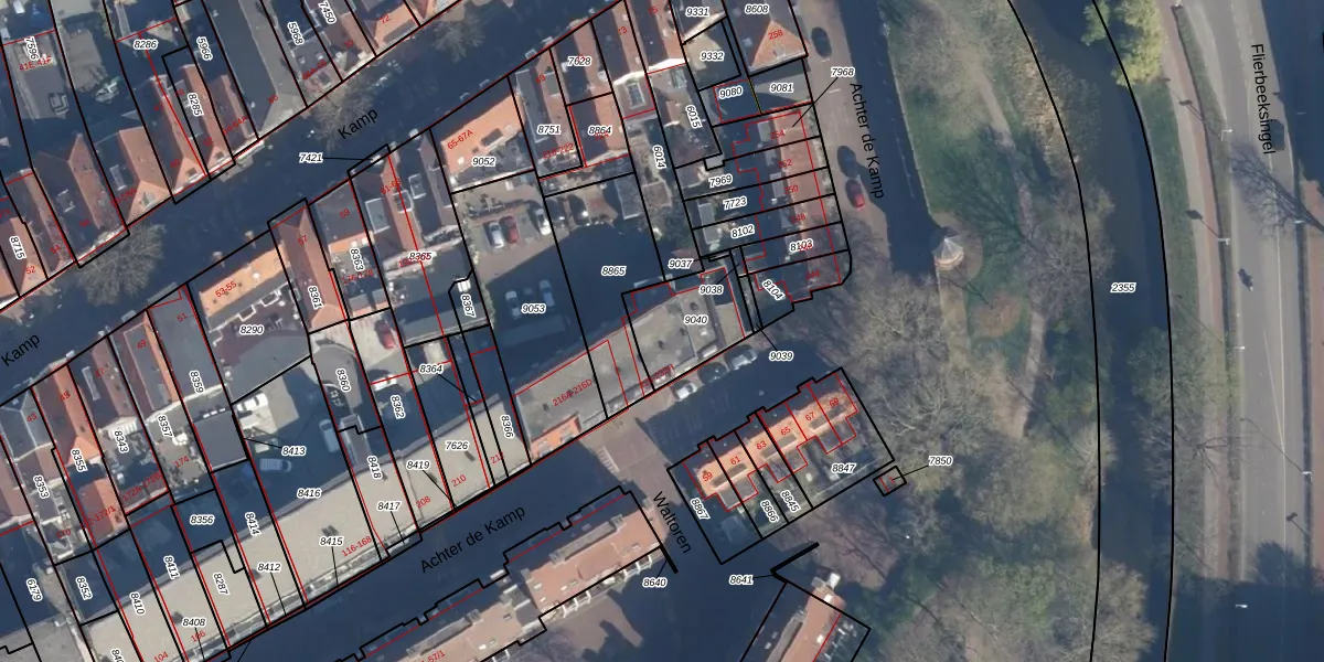 Het perceel waarop het adres ligt is AMF00-E-9040. De afkorting 'AMF00' staat voor kadastrale gemeente Amersfoort. De gemiddelde perceelgrootte in Amersfoort is 959,94 m². Dit perceel is kleiner: de perceeloppervlakte bedraagt 236 m². De grootste perceeloppervlakte in de kadastrale gemeente is 1,12 km². De kleinste oppervlakte bedraagt 0 m². Op het perceel zijn 5 adressen aanwezig. In de Basisregistratie Kadaster (BRK) werden de grenzen van het perceel geregistreerd op 16-04-2014.