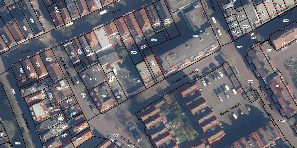 Het adres is gelegen op perceel 7620 in de sectie E en de kadastrale gemeente Amersfoort. De kadastrale aanduiding is aldus AMF00-E-7620. De gemiddelde perceelgrootte in Amersfoort is 959,94 m². Dit perceel is kleiner: de perceeloppervlakte bedraagt 130 m². Het kleinste perceel in de kadastrale gemeente is 0 m² groot. De grootste perceeloppervlakte is 1,12 km². Er zijn 4 adressen aanwezig op het perceel. De laatste wijziging in het de Basisregistratie Kadaster (BRK) was op 29-01-2003.