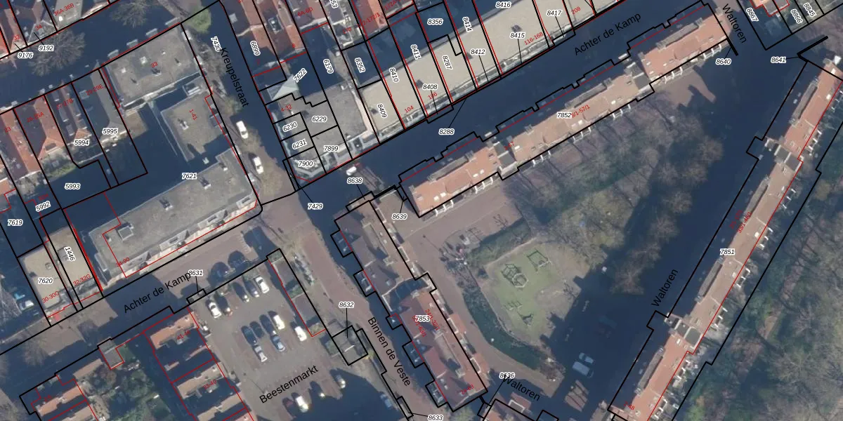 Het perceel waarop het adres ligt is AMF00-E-7852. De afkorting 'AMF00' staat voor kadastrale gemeente Amersfoort. De gemiddelde perceelgrootte in Amersfoort is 959,94 m². Dit perceel is kleiner: de perceeloppervlakte bedraagt 910 m². Het kleinste perceel in de kadastrale gemeente is 0 m² groot. De grootste perceeloppervlakte is 1,12 km². Op het perceel zijn 56 adressen aanwezig. In de Basisregistratie Kadaster (BRK) werden de grenzen van het perceel geregistreerd op 29-01-2003.