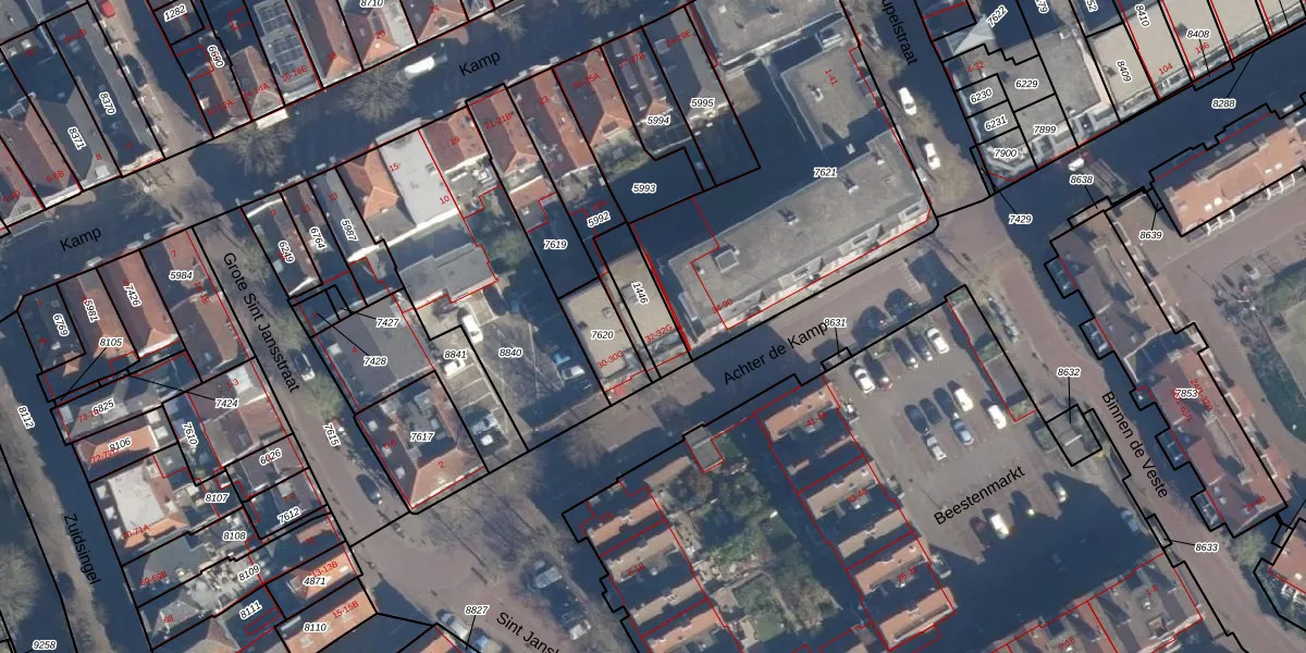 Het adres ligt op het perceel AMF00-E-1446, dat zich in de kadastrale gemeente Amersfoort bevindt. Het perceel is 130 m² groot. Dat is kleiner dan de gemiddelde perceeloppervlakte in Amersfoort, dat op 959,94 m² ligt. Het grootste perceel in de kadastrale gemeente is 1,12 km². Het kleinste perceel heeft een oppervlakte van 0 m². Er zijn 7 adressen aanwezig op het perceel. De huidige grenzen van het perceel zijn digitaal in de Basisregistratie Kadaster (BRK) geregistreerd op 29-01-2003.