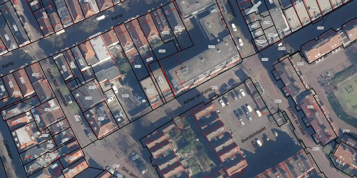 Het adres is gelegen op perceel 7621 in de sectie E en de kadastrale gemeente Amersfoort. De kadastrale aanduiding is aldus AMF00-E-7621. Het perceel is met 1525 m² relatief groot. Het gemiddelde ligt in de kadastrale gemeente Amersfoort op 959,8 m². De grootste perceeloppervlakte in de kadastrale gemeente is 1,12 km². De kleinste oppervlakte bedraagt 0 m². Op het perceel liggen in totaal 51 adressen. De huidige grenzen van het perceel zijn digitaal in de Basisregistratie Kadaster (BRK) geregistreerd op 29-01-2003.