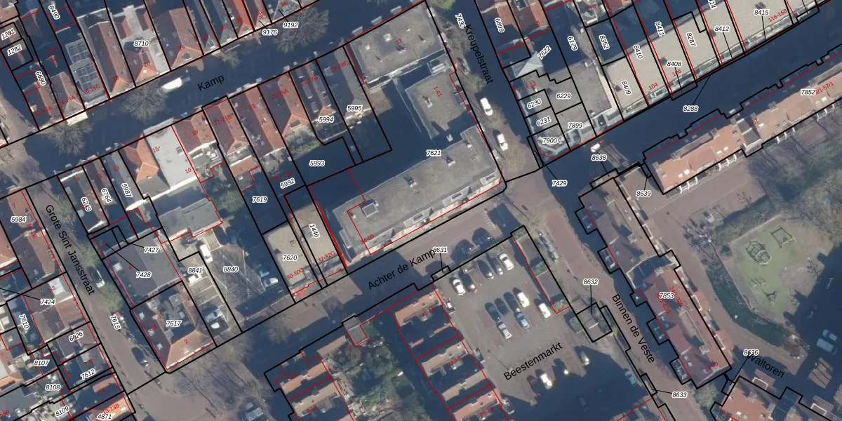 Het perceel waarop het adres ligt is AMF00-E-7621. De afkorting 'AMF00' staat voor kadastrale gemeente Amersfoort. De oppervlakte van het perceel is 1525 m². Dat is groter dan gemiddeld in Amersfoort, waar de gemiddelde perceeloppervlakte op 960,19 m² ligt. Het kleinste perceel in de kadastrale gemeente is 0 m² groot. De grootste perceeloppervlakte is 1,12 km². Er zijn 51 adressen aanwezig op het perceel. In de Basisregistratie Kadaster (BRK) werden de grenzen van het perceel geregistreerd op 29-01-2003.