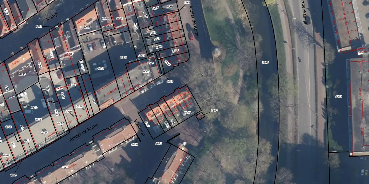 Het adres is gelegen op perceel 8847 in de sectie E en de kadastrale gemeente Amersfoort. De kadastrale aanduiding is aldus AMF00-E-8847. Het perceel is kleiner dan gemiddeld in Amersfoort. Het perceel is 229 m² groot, terwijl het gemiddelde ligt op 959,94 m². Het grootste perceel in de kadastrale gemeente is 1,12 km². Het kleinste perceel heeft een oppervlakte van 0 m². Op het perceel zijn 3 adressen aanwezig. In de Basisregistratie Kadaster (BRK) werden de grenzen van het perceel geregistreerd op 22-12-2011.