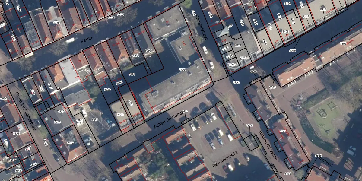 Het adres is gelegen op perceel 7621 in de sectie E en de kadastrale gemeente Amersfoort. De kadastrale aanduiding is aldus AMF00-E-7621. De oppervlakte van het perceel is 1525 m². Dat is groter dan gemiddeld in Amersfoort, waar de gemiddelde perceeloppervlakte op 960,37 m² ligt. Het grootste perceel in de kadastrale gemeente is 1,12 km². Het kleinste perceel heeft een oppervlakte van 0 m². Er zijn 51 adressen aanwezig op het perceel. De huidige grenzen van het perceel zijn digitaal in de Basisregistratie Kadaster (BRK) geregistreerd op 29-01-2003.
