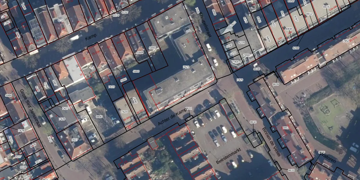 Het perceel waarop het adres ligt is AMF00-E-7621. De afkorting 'AMF00' staat voor kadastrale gemeente Amersfoort. De gemiddelde perceeloppervlakte in de kadastrale gemeente Amersfoort is 959,94 m². Dit perceel is met zijn 1525 m² dus groter dan gemiddeld. De grootste perceeloppervlakte in de kadastrale gemeente is 1,12 km². De kleinste oppervlakte bedraagt 0 m². Op het perceel zijn 51 adressen aanwezig. De laatste wijziging in het de Basisregistratie Kadaster (BRK) was op 29-01-2003.