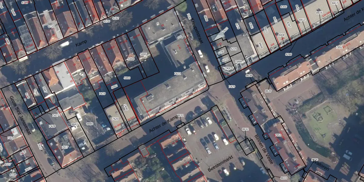 Het adres ligt op het perceel AMF00-E-7621, dat zich in de kadastrale gemeente Amersfoort bevindt. De oppervlakte van het perceel is 1525 m². Dat is groter dan gemiddeld in Amersfoort, waar de gemiddelde perceeloppervlakte op 959,94 m² ligt. De grootste perceeloppervlakte in de kadastrale gemeente is 1,12 km². De kleinste oppervlakte bedraagt 0 m². Op het perceel zijn 51 adressen aanwezig. De huidige grenzen van het perceel zijn digitaal in de Basisregistratie Kadaster (BRK) geregistreerd op 29-01-2003.