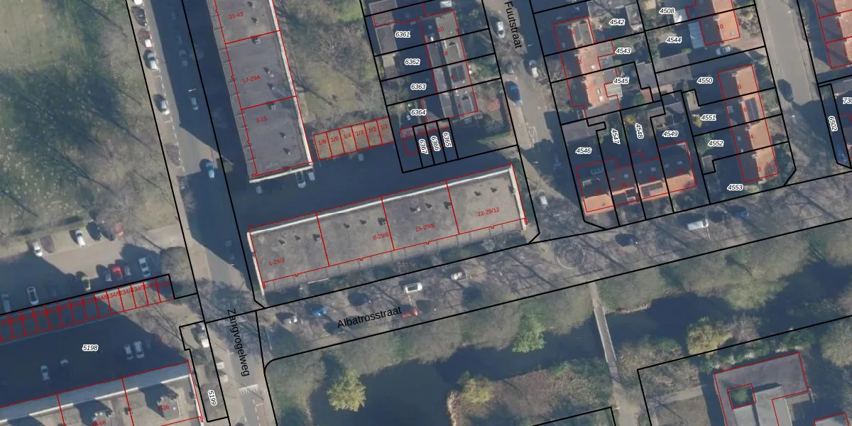 Het perceel waarop Albatrosstraat 20 staat heeft een oppervlakte van 9258 m². Dit is een zeer groot perceel. De perceeloppervlakte wordt geregistreerd door het Kadaster. Gedetailleerde informatie over de maten van dit perceel kunt u vinden in het rapport Kadastrale kaart met maatvoering van Albatrosstraat 20.
