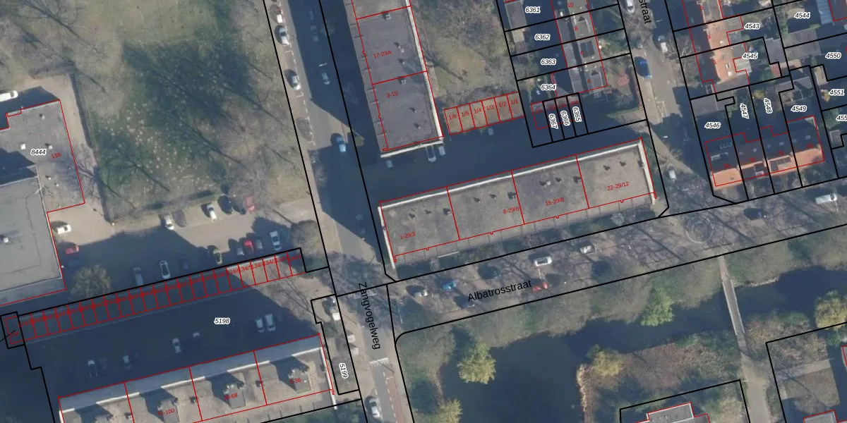 Het perceel waarop Albatrosstraat 3 staat heeft een oppervlakte van 9258 m². Dit is een zeer groot perceel. De perceeloppervlakte wordt geregistreerd door het Kadaster. Gedetailleerde informatie over de maten van dit perceel kunt u vinden in het rapport Kadastrale kaart met maatvoering van Albatrosstraat 3.