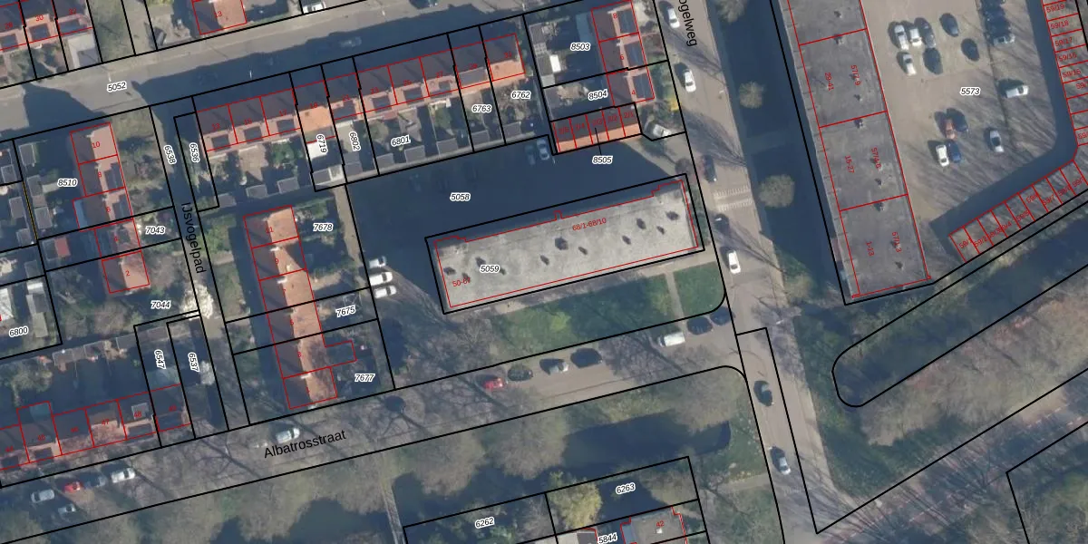 Het perceel waarop Albatrosstraat 60 staat heeft een oppervlakte van 711 m². Dit is een groot perceel. De perceeloppervlakte wordt geregistreerd door het Kadaster. Gedetailleerde informatie over de maten van dit perceel kunt u vinden in het rapport Kadastrale kaart met maatvoering van Albatrosstraat 60.
