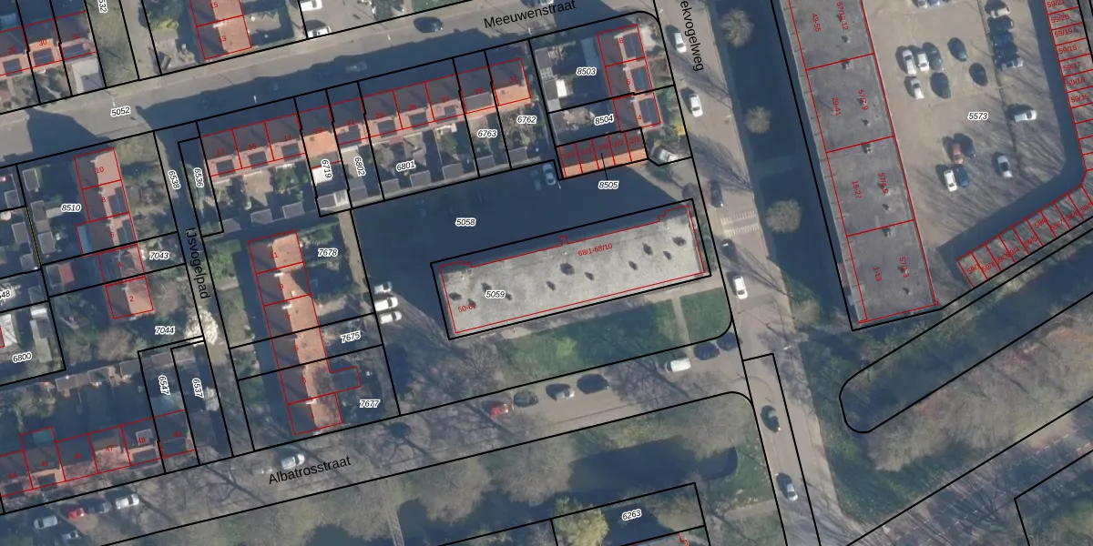 Het perceel waarop Albatrosstraat 68-2 staat heeft een oppervlakte van 711 m². Dit is een groot perceel. De perceeloppervlakte wordt geregistreerd door het Kadaster. Gedetailleerde informatie over de maten van dit perceel kunt u vinden in het rapport Kadastrale kaart met maatvoering van Albatrosstraat 68-2.
