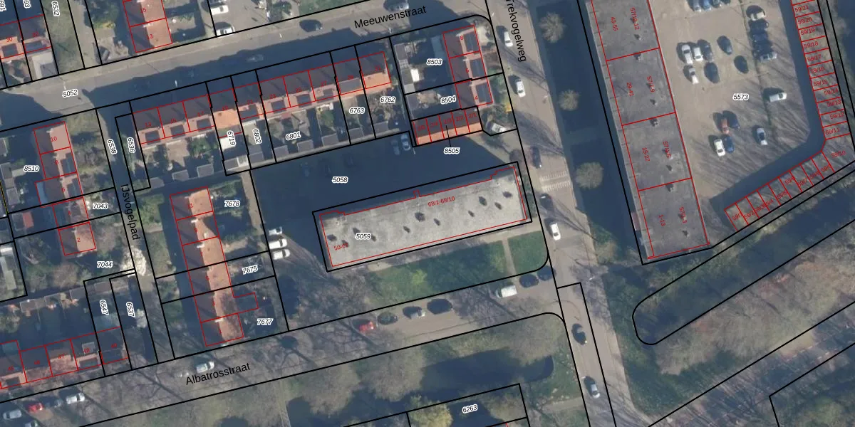 Het perceel waarop Albatrosstraat 68-8 staat heeft een oppervlakte van 711 m². Dit is een groot perceel. De perceeloppervlakte wordt geregistreerd door het Kadaster. Gedetailleerde informatie over de maten van dit perceel kunt u vinden in het rapport Kadastrale kaart met maatvoering van Albatrosstraat 68-8.