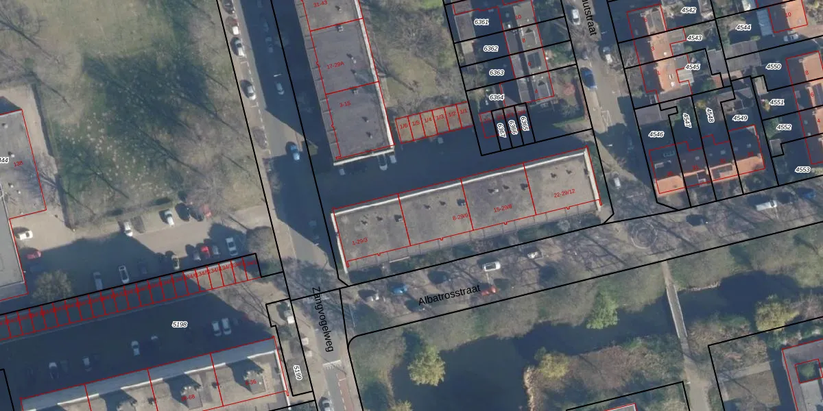 Het perceel waarop Albatrosstraat 8 staat heeft een oppervlakte van 9258 m². Dit is een zeer groot perceel. De perceeloppervlakte wordt geregistreerd door het Kadaster. Gedetailleerde informatie over de maten van dit perceel kunt u vinden in het rapport Kadastrale kaart met maatvoering van Albatrosstraat 8.