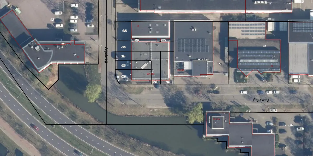Algolweg 18-E is gelegen op kadastraal perceel AMF00M414. Deze kadastrale aanduiding is uniek en wordt gebruikt door het Kadaster om eigendomsrechten en andere zakelijke rechten vast te leggen. Het perceel maakt onderdeel uit van de kadastrale gemeente Amersfoort.