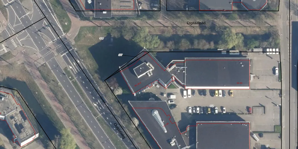 Het perceel waarop Algolweg 9-9 staat heeft een oppervlakte van 7410 m². Dit is een zeer groot perceel. De perceeloppervlakte wordt geregistreerd door het Kadaster. Gedetailleerde informatie over de maten van dit perceel kunt u vinden in het rapport Kadastrale kaart met maatvoering van Algolweg 9-9.